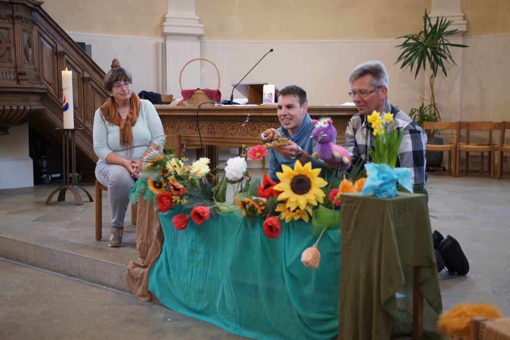 Ca. 9 Mal im Jahr erleben die Kinder in der Kirche Siebnen und im Kirchgemeindehaus Lachen einen lebendigen und altersgerechten Gottesdienst, hören eine kurze Geschichte, lernen einfache Lieder und beten.