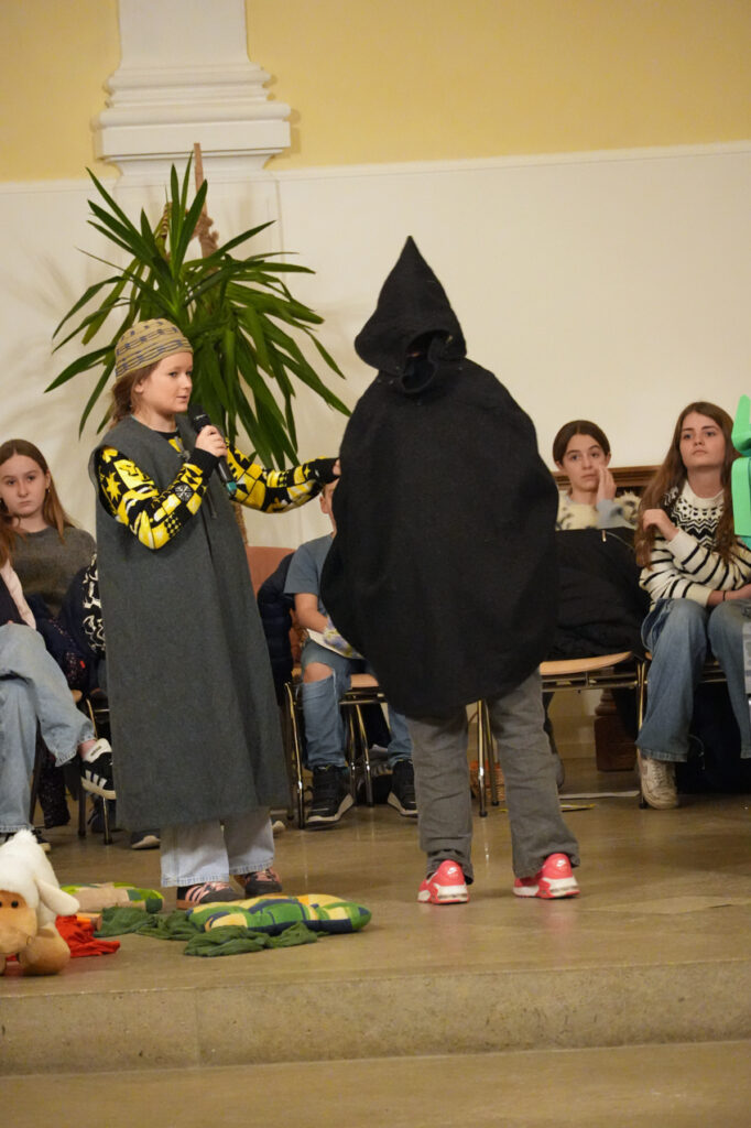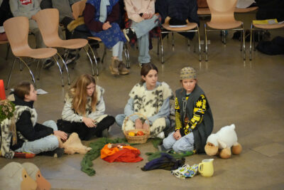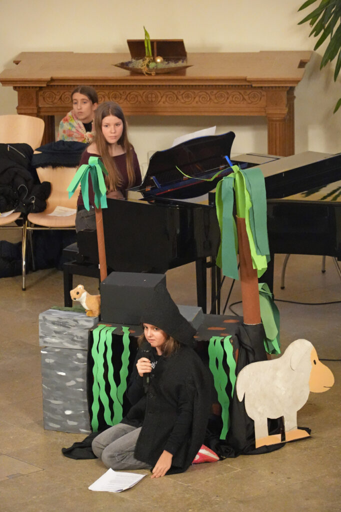Das Katechetikteam und Projektschüler erzählten, was der grosse Räuber erlebt hat.